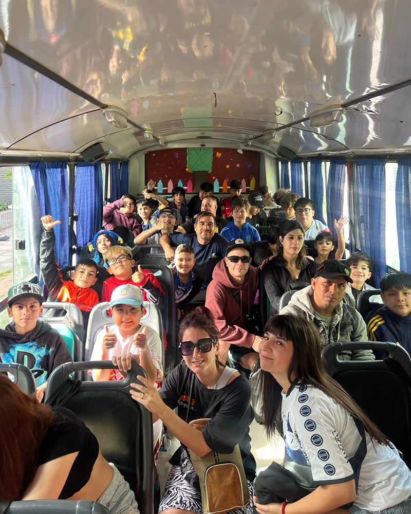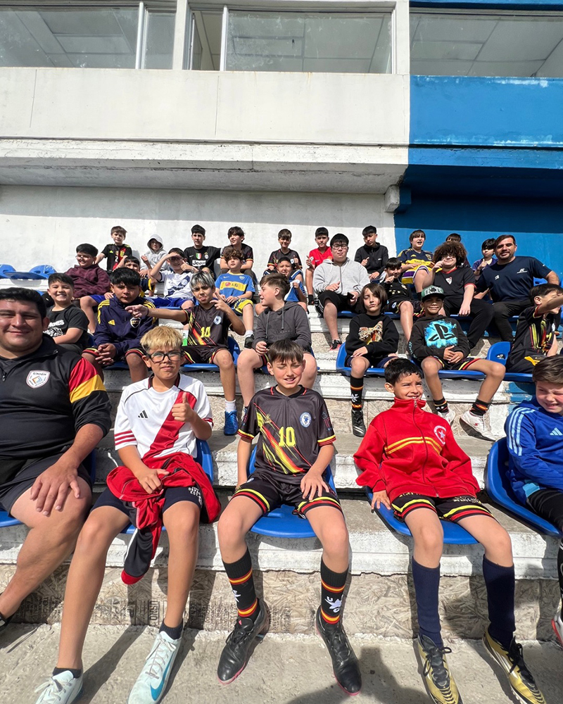 Durante la salida, los niños visitaron la cancha del Club Deportivo Merlo, donde pudieron saludar a los jugadores y vivir de cerca el ambiente futbolero que tanto los inspira.